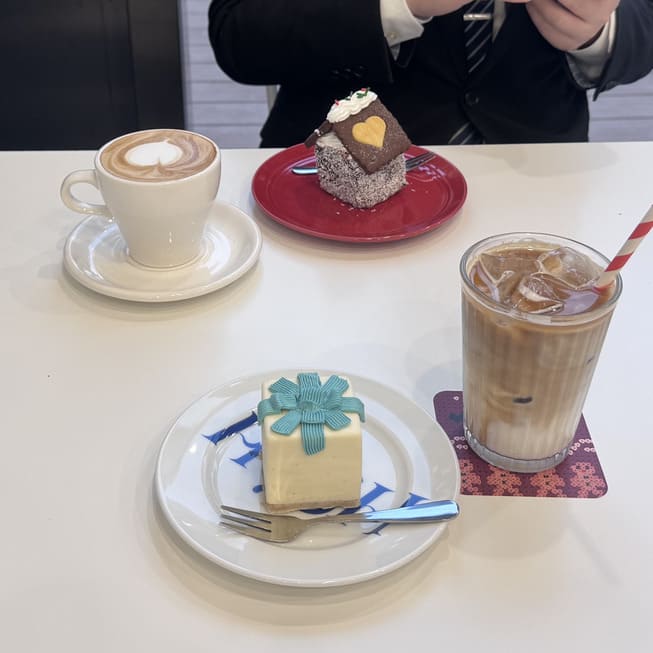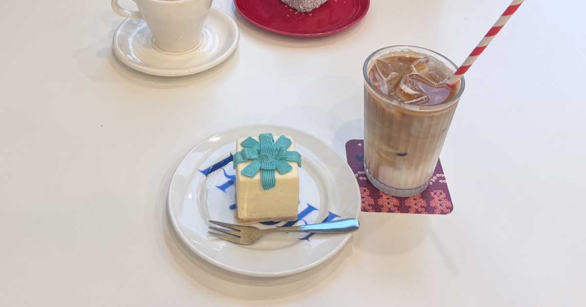 とても可愛いケーキに惹かれ、プレゼントボックスのケーキとバニララテを注文しました!