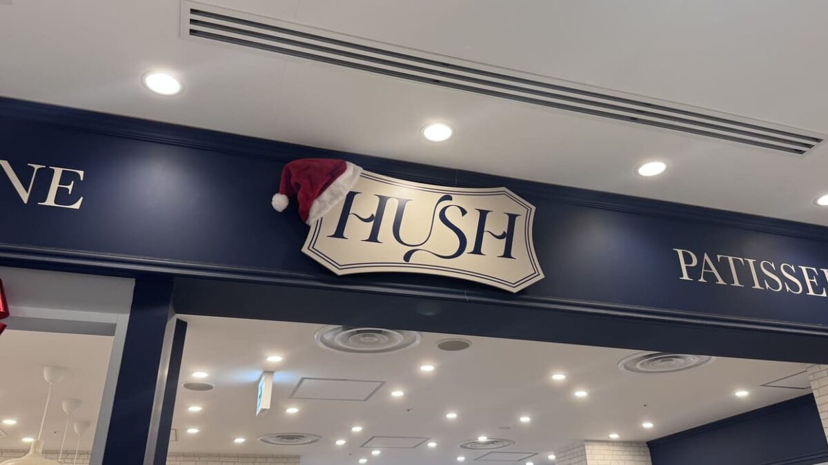 ロゴの看板がサンタ帽を被っているのを見つけました🎅