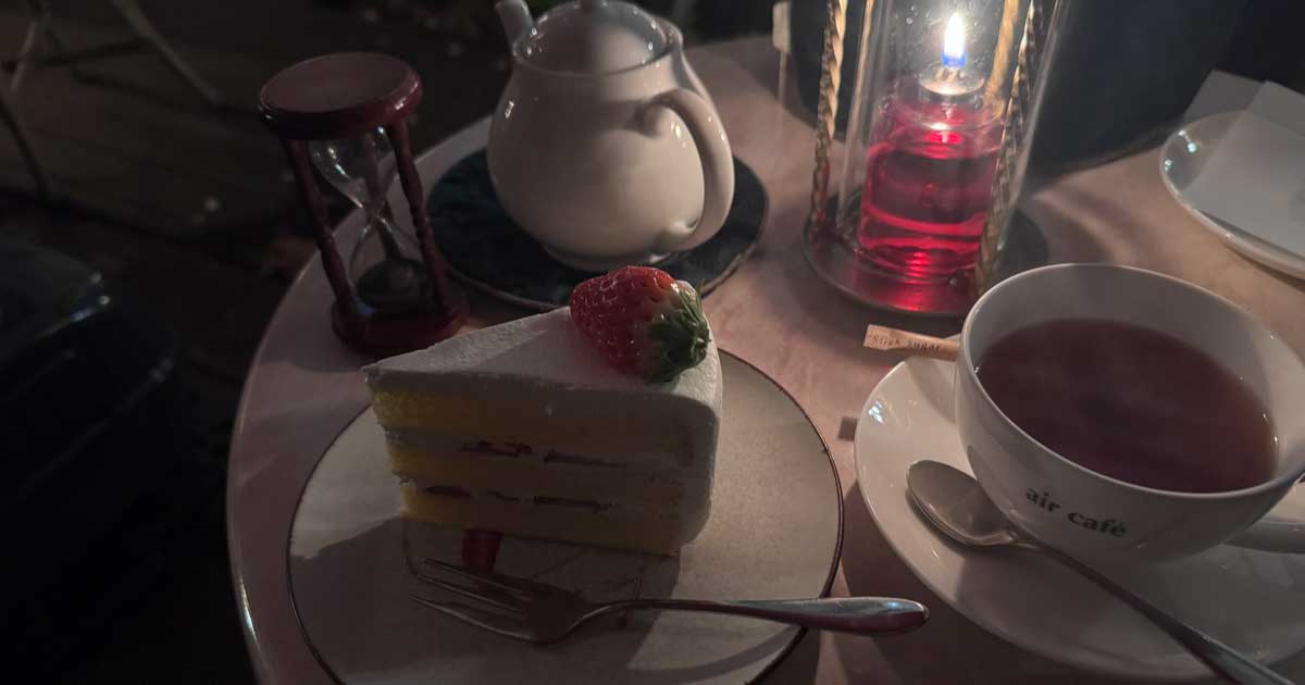 苺のショートケーキとハニーストロベリーティーを注文しました!🍓