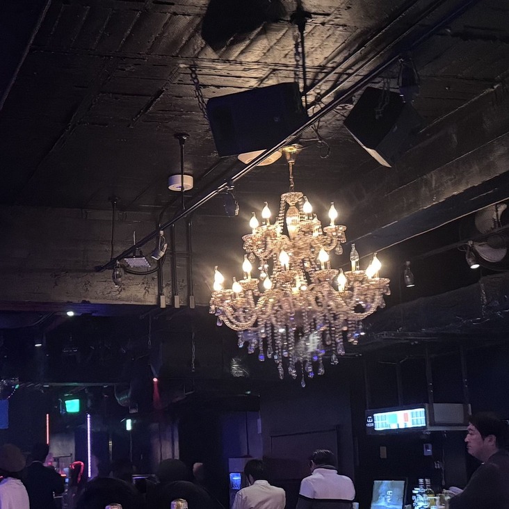 クラブディスコで店内には大きなシャンデリアやスティックバルーンがあります