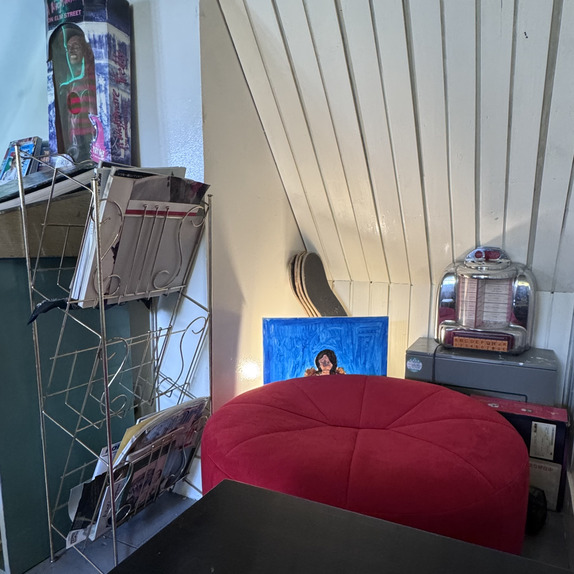 隠れ家感のあるカフェで、2階へ登るとネオンのライトやポスターがあり素敵でした