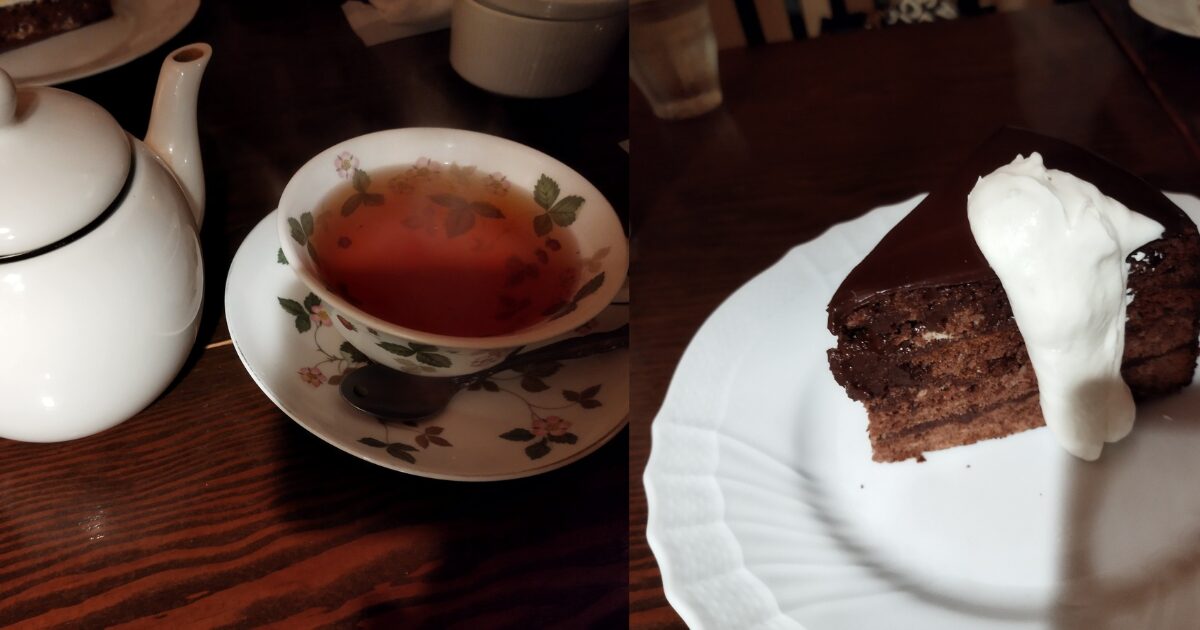 ケーキの方はザッハトルテというものを頂きました。ビターなチョコレートとまろやかな生クリームの相性が最高でぱくぱくと食べてしまいました……///