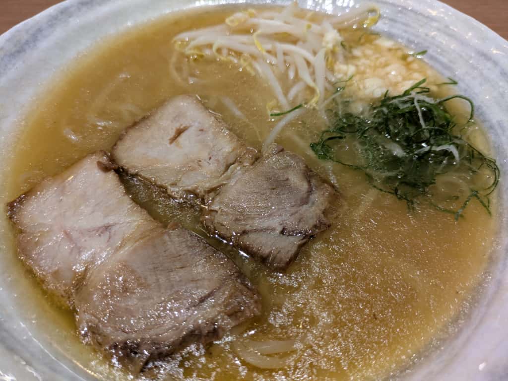 ラーメンはこちら!スープは日本でよく食べるラーメンと比べてあっさりしている代わりに、ごま油がかなり効いており、中華スープのように飲めてしまう美味しいスープでした。