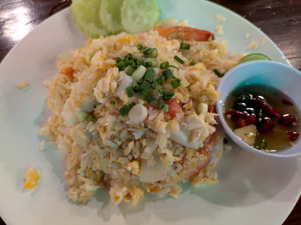 チャーハンにはライムときゅうりが付いてくるのが定番のようで、ライムを絞って食べるとさっぱりしてチャーハンとの相性が抜群でした。
