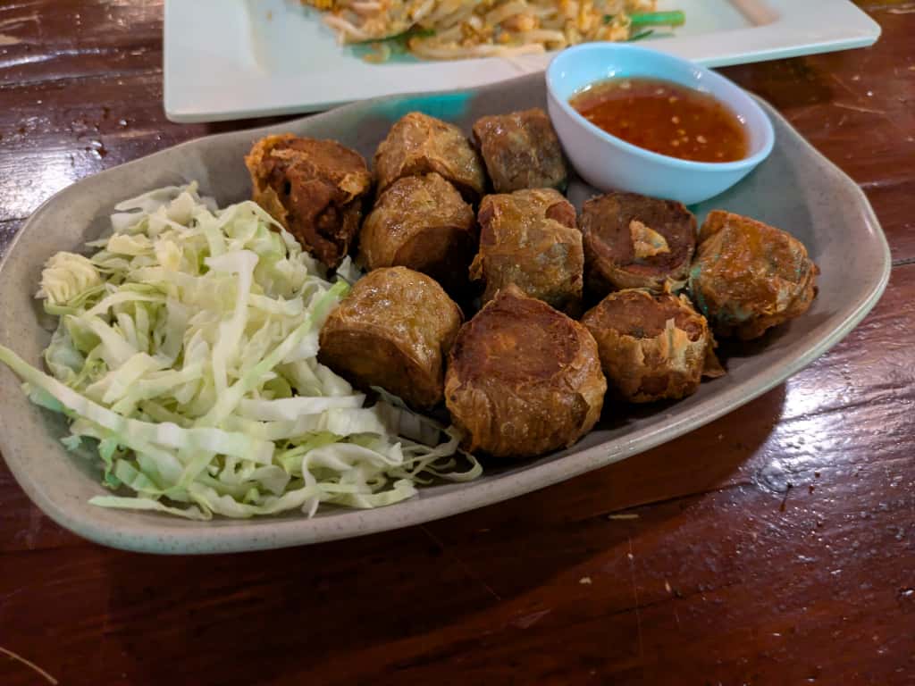 料理はエビチャーハンと、カニの練り物?の揚げ物?を注文。
