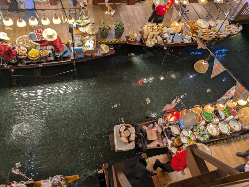 しかし今回紹介したいのはこちら。なんと屋内に水上マーケットのような様相を呈したエリアがありました。