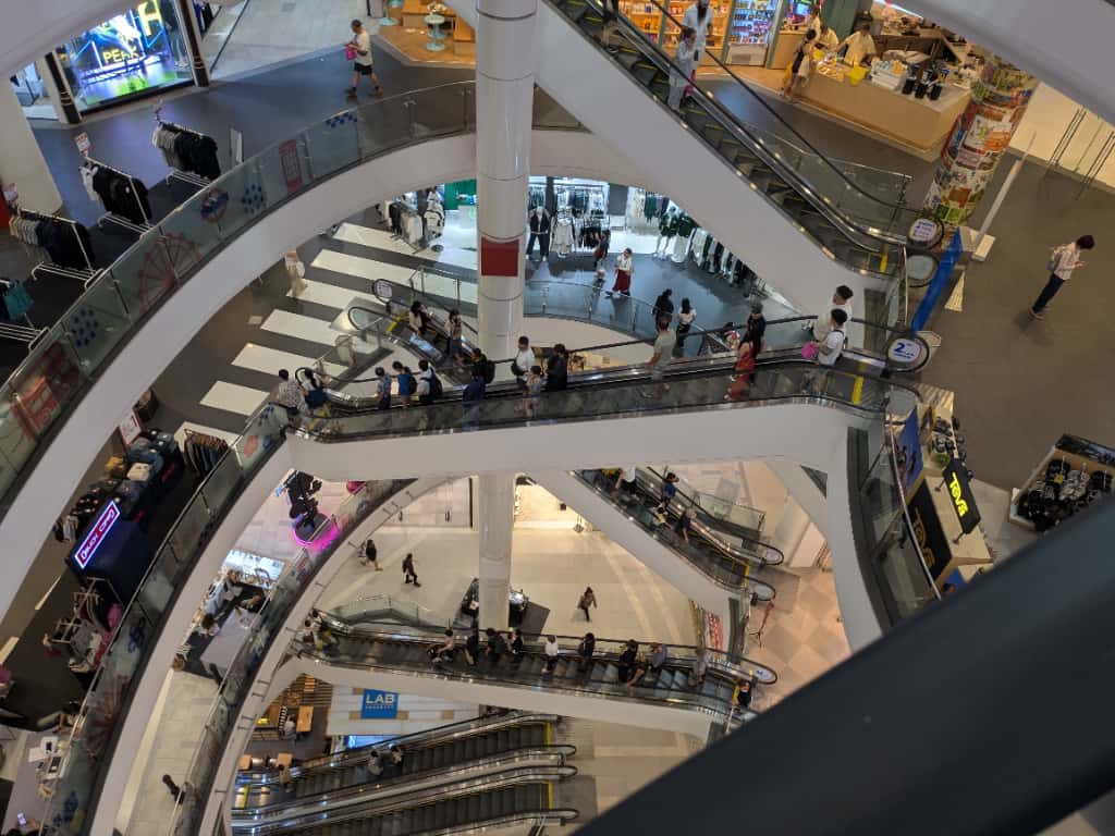 エスカレーターで階を移動するたびに、まるで海外旅行をしているかのような気分を味わえます。価格帯も比較的リーズナブルで、観光客にも地元の若者にも人気のスポットです。